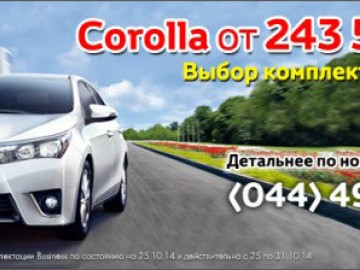 *Стоимость указана на автомобиль Toyota Corolla в комплектации Business по состоянию на 31.10.14 г. и действительна с 31.10 2014 г. по 7.11.2014 г.