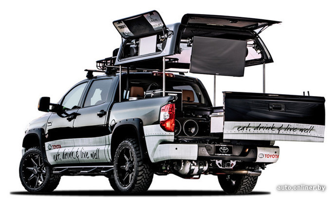 До сих пор думаете, что пикапы — это коммерческая техника для перевоза сена? Тогда взгляните на новый проект Toyota и тюнинг-ателье Divine 1 Customs, которые подготовили доработанную версию Tundra специально для выставки SEMA-2014. «Грузовиком» назвать такую машину язык не повернется, сообщает .