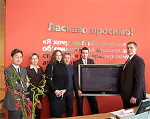 От имени компании Тойота Украина генеральный директор господин Ацуя Кондо поздравил счастливых обладателей новенького внедорожника и вручил им в подарок плазменный телевизор производства компании Panasonic – одного из спонсор формульной команды Тойота.