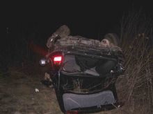 После этого, в следствие неуправляемости автомобиля, переехал проезжую часть и съехал в левый по ходу движения кювет, где перевернулся.