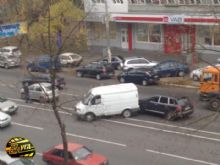 На ул. Соломенской столкнулись три автомобиля: ГАЗель, Skoda Fabia и Porsche Cayenne, сообщает .