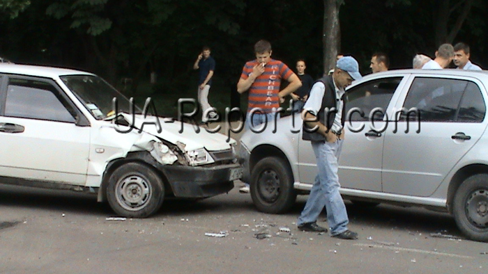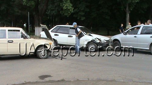 Пожилой водитель на ВАЗ-2106 выезжал с улицы Закарпатской на Мытную (главная) и видимо так задумался, что вместо тормоза нажал на газ.. и протаранил "99" , которая ехала от круга в сторону стадиона "Авангард". Девятка в свою очередь ударила едущую по встречной Skoda Fabia.