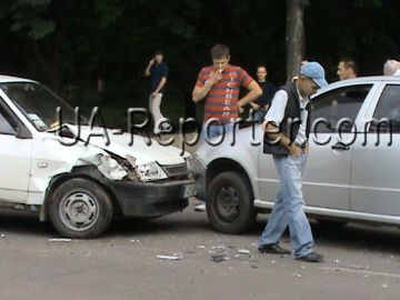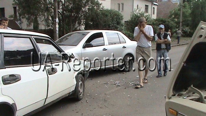 Движение на ул. Мытной заблокировано. Участники ДТП ожидают инспекторов ужгородского отдела ГАИ и... проклинают дедушку.