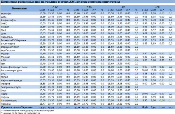 Сегодня, 6 ноября, существенных изменений на рынке топлива не произошло. Цены остались на уровне конца прошлой недели. Об этом свидетельствуют данные мониторинга Консалтинговой группы "А-95", сообщает .