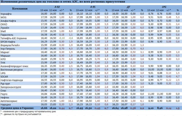 Сегодня, 13 ноября, цены на бензин в Украине продолжили расти. Некоторые АЗС подняли стоимость топлива сразу на 1 грн, сообщает .