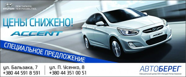 Компания ООО «Автоберег», официальный дилер автомобилей ТМ HYUNDAI в Украине, объявляет о старте специального предложения на покупку Hyundai Accent!.