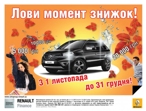 - Renault Koleos- со скидкой до 20 000 тыс.грн.;
