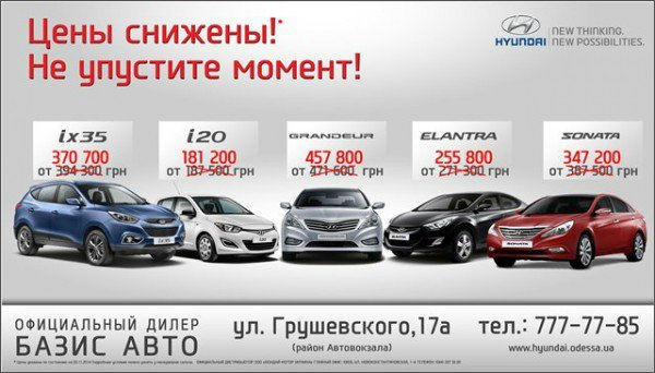Официальный дилер автомобилей HYUNDAI в Одессе компания БАЗИС АВТО информирует о продлении доступных цен на популярные модели в семействе Hyundai.