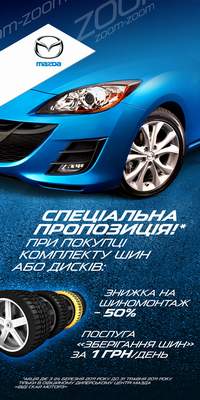 В период с 24 марта по 31 мая 2011 года в официальном дилерском центре Mazda «ВиДи Скай  Моторз» действует специальное предложение по смене шин, которое позволит сделать этот процесс более комфортным и выгодным.