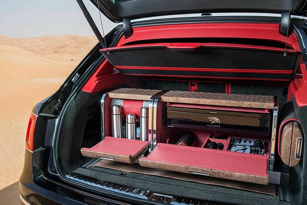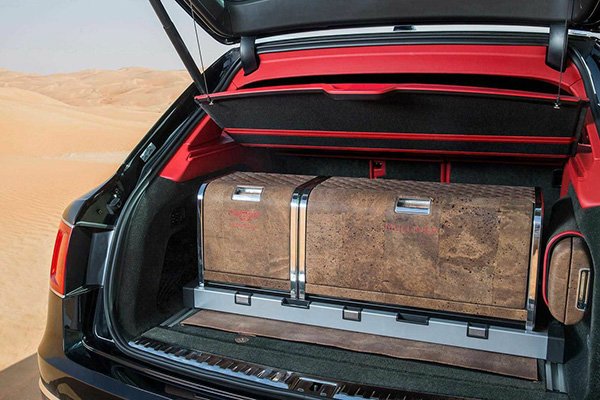 Особенность спецверсии — это две секции в багажнике, отделанные натуральной пробковой тканью, в которых находится все необходимое оборудование для охоты.