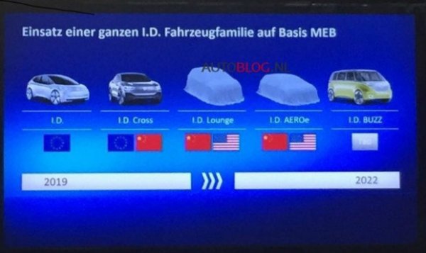 В распоряжении нидерландского сайта Groen7 оказался кадр из презентации компании Volkswagen, касающийся развития линейки электрокаров. Помимо уже известных автомобилей, в гамме марки появится модели I.D. Lounge и I.D. AEROe. Причем последняя из них, судя по силуэту, станет спортивным купе, сообщает .