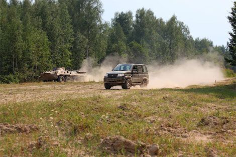 Ульяновский автозавод провел испытания динамики, конструктивной прочности и проходимости внедорожника Patriot Sport на одном из военных полигонов в Московской области. Для этих целей автомобиль сравнили с бронетранспортером БТР-80, который соревновался с ''Патриотом'' в своеобразном дрэг-рейсинге по внедорожной трассе, предназначенной для тяжелой гусеничной техники, сообщает .