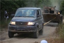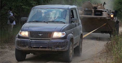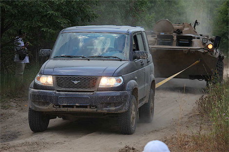 После заезда "УАЗ", снаряженная масса которого составляет две тонны, смог отбуксировать 13-тонный БТР на расстояние 100 метров. В испытаниях участвовал "Патриот" с 2,7-литровым мотором мощностью 128 лошадиных сил (218 Нм) и пятиступенчатой "механикой".