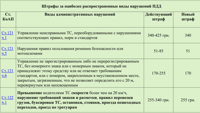 Согласно принятому Верховной Радой 14 июля закона «О внесении изменений в некоторые законодательные акты Украины относительно совершенствования регулирования отношений в сфере обеспечения безопасности дорожного движения» вносятся изменения в административный Кодекс Украины, в котором, собственно говоря, и установлены новые размеры штрафов, сообщает .