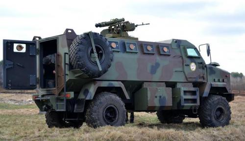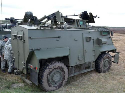 Британский броневик Saxon AT-105 обзавелся сразу двумя типами пулеметов. На него установили тот же ДШКМ спереди, а по бокам украинский КТ-12,7 мм. Нашлось место еще и для одного ПТУРа.