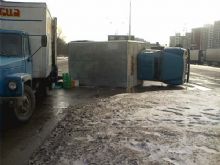 Когда уберут перевернутый грузовик - неизвестно. Пока обе машины блокируют левую полосу движения.