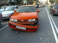 Nissan ударил мотоцикл Honda CDR-600 в правый бок. Мотоциклист Олег во время удара автомобиля не пострадал. Чего нельзя сказать о технике: у мотоцикла поврежден пластик, крыло и выхлопная труба; у Nissan отвалился бампер и разбилась фара.