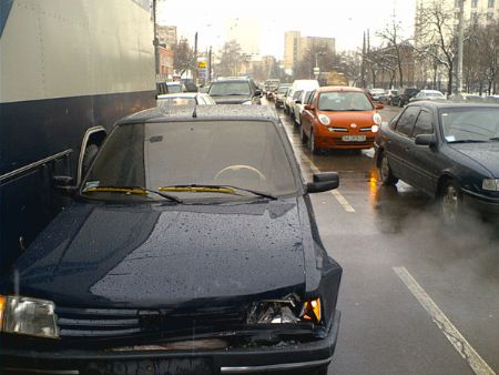 На ул. Мельникова, по направлению к метро «Лукьяновка» Peugeot 307, который ехал в левом ряду, вынужден был уйти от внезапно подрезавшей его машины, сообщает .