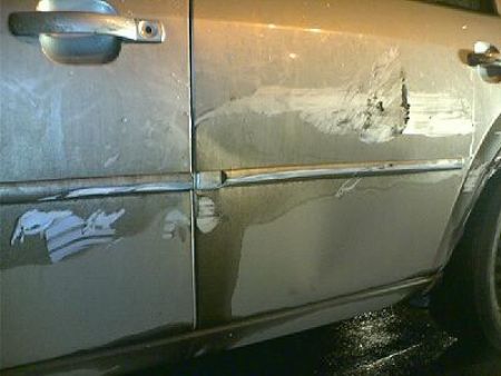 У Ford остался большущий „шрам”, который тянется с передней левой дверцы через заднюю, крыло и плавно переходит на бампер. Водитель Mоndeo пытается вызвать собственную службу безопасности. Его автомобиль незастрахованный, потому водителю легковушки остается надеяться, что ГАИ примет решение в его пользу.