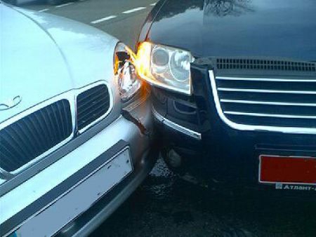 Водитель новенького Passat, на котором были дипломатические номера, решил развернуться. Необдуманным маневром он подставил крыло своего автомобиля под хороший удар Daewoo.