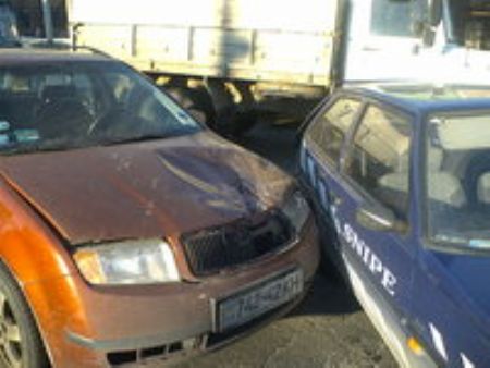 В результате такой комбинации Mazda «шестерка» врезалась в «Таврию». Легкий автомобильчик закрутился волчком и взлетел в воздух. Свой полет он закончил на капоте Skoda Fabia, а красная торпеда Mazda полетела дальше и остановилась в борту минивэна.