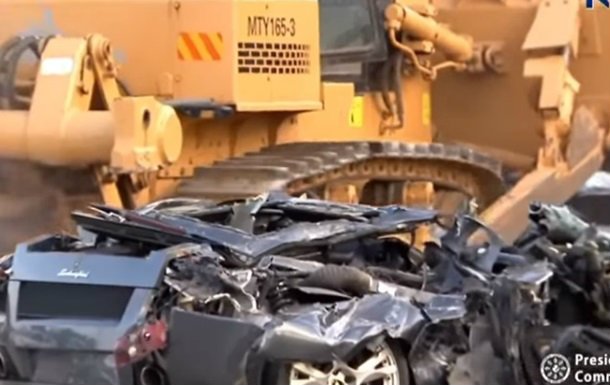 В Сети появилось видео с уничтожением роскошных суперкаров Porsche, Lamborghini и Mercedes Benz бульдозером.