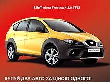 «Ну вот, в который раз» – скажите Вы – «покупай автомобиль, участвуй в розыгрыше еще одного»... Нет, нет, нет! Стоп! Мы вам предлагаем совершенно другую формулу – формулу феноменальной возможности получить сразу два автомобиля, заплатив лишь за один! Итак, приготовьтесь – покупая SEAT Altea Freetrack 2,0 TSI за $43990, Вы получаете еще одного железного друга – SEAT Cordoba Reference 1,4, причем сразу-же (!) Активный кроссовер Altea Freetrack дарит невероятное удовольствие от вождения 200-сильного вседорожнего болида, а Cordoba Reference 1,4 станет настоящим ежедневным помощником в условиях динамичного мегаполиса.