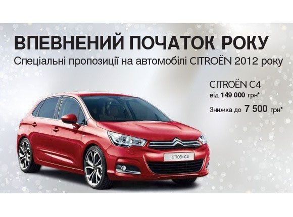Еще не поздно сделать себе подарок в новом году и приобрести новый автомобиль Citroёn, ведь сейчас самое подходящее для этого время – автосалон «НИКО Авант Моторс» предлагает акционные цены на самые популярные модели Citroёn 2012 года выпуска: городские компакт-кары, семейные и вместительные мини-вэны, динамичные и спортивные модели, автомобили премиум-класса, а также представляет новинки Citroёn – бюджетный седан C-Elysee, новые дизельные версии DS4, а также обновленный C3 Picasso.