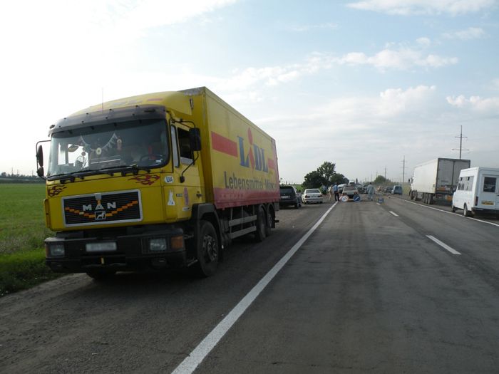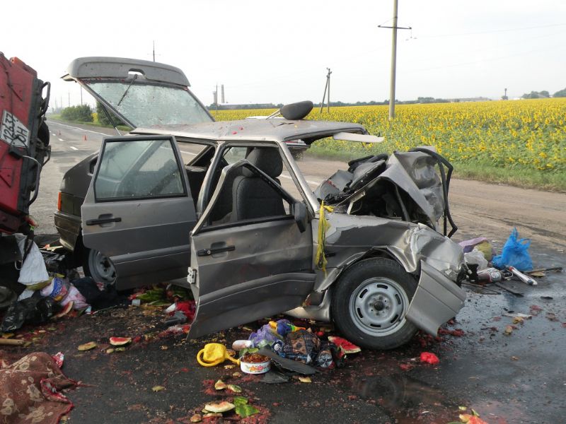 22 июля, в 5:15, на 134 89 км автодороги ''Ульяновка - Николаев'' водитель автомобиля ВАЗ 211440, двигаясь из г. Южноукраинска в направлении г. Вознесенска, при встречном разъезде не выбрал безопасный боковой интервал и допустил боковое столкновение с двигающимся во встречном направлении грузовым автомобилем MAN, под управлением 53-летнего водителя, жителя Закарпатской области, сообщает .