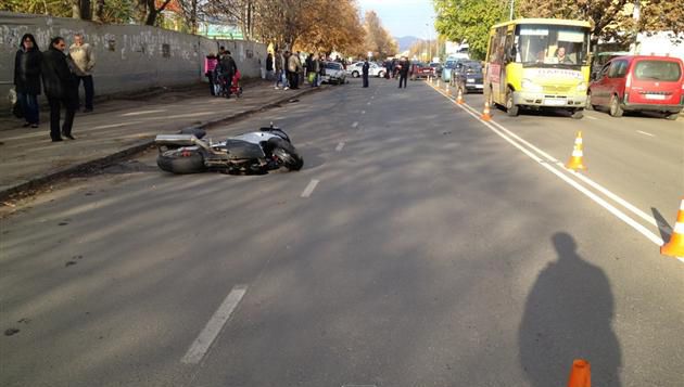 В это время автомобиль марки «Дачия», который двигался от кольца на ул. Минайская, решил через двойную сплошную вернуть сторону «Сильпо». Там в него врезался мотоцикл, двигавшийся по встречной полосе. «Отрекошетив» от «Дачии», мотоцикл врезался в «Мерседес» и дальше пролетел еще метров тридцать вдоль по улице.