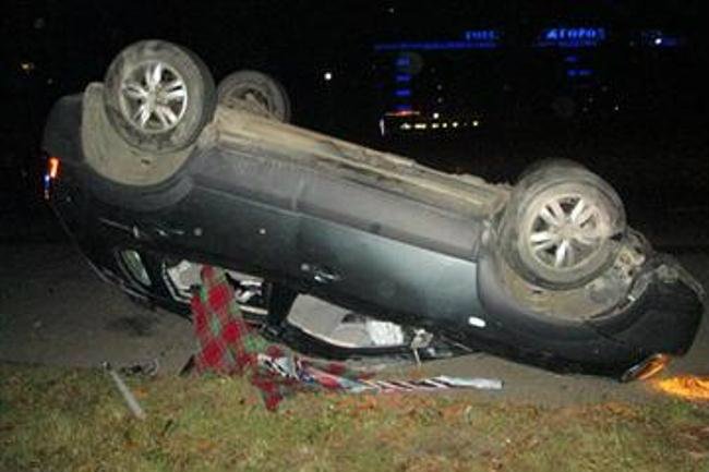 Водитель автомобиля Hyundai Tucson, проехав на огромной скорости транспортный мост на пл. Б.Хмельницкого не смог справиться с управлением и врезался в бетонную опору круга.