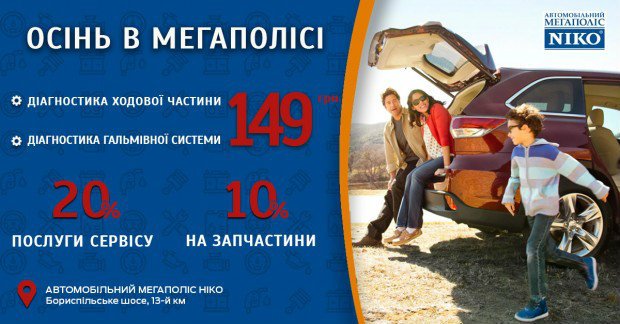 Воспользуйтесь выгодными сервисными условиями в официальных дилерских центрах «Автомобильного Мегаполиса НИКО» на Бориспольском шоссе, 13-й км.