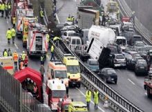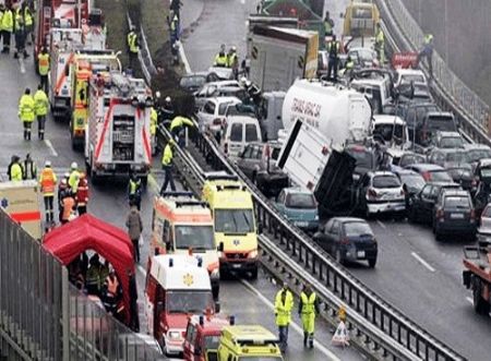 Столкнулись примерно 40 легковых автомобилей, грузовиков и автобусов.