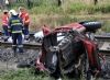 Казалось бы трагическое ДТП, какое чудо..ранены люди !? Но глядя на эти фото с места происшествия, где видно, как поезд буквально разрезал автомобиль, нам показалось , что все трое пассажиров родились "в рубашке"!