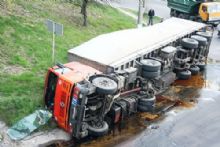 Сегодня в Чернигове, в 8:30 утра по улице Любечской, на конечной остановке троллейбуса №6 (на кругу) перевернулась грузовая фура, сообщает .
