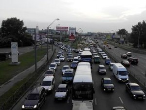 Еще одна пробка, немного покороче, возникла 19 мая в 12:49 от улицы Максима Кривоноса до станции метро "Дорогожичи". Ее длина составила 6,5 км.