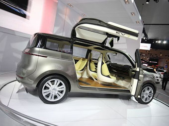 Компания Kia представила на моторшоу в Детройте концептуальный кроссовер KV7. Одной из особенностей машины являются огромные задние двери типа ''крыло чайки'', поднимающиеся наверх. Спереди установлены традиционные распашные двери, при этом центральная стойка у автомобиля отсутствует, сообщает .