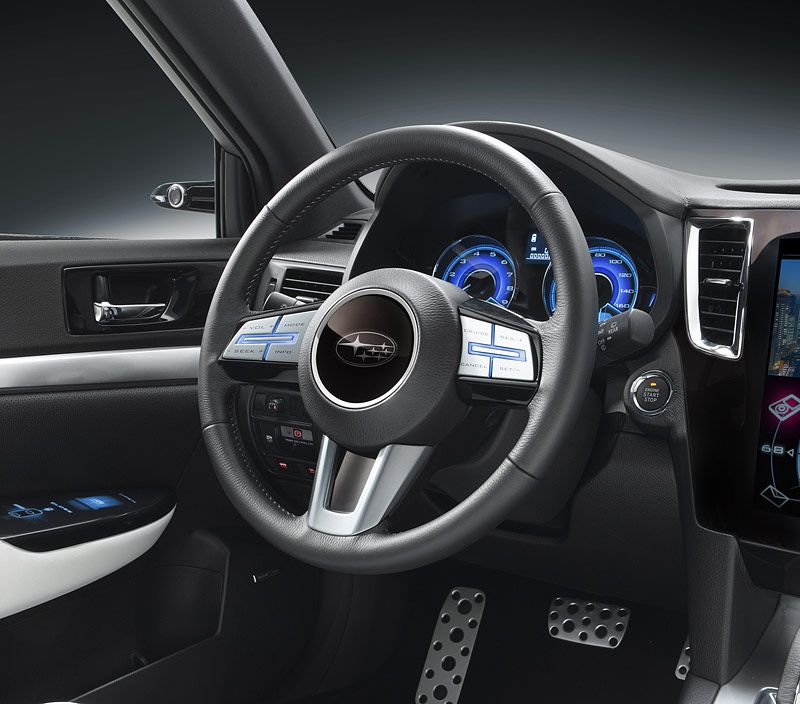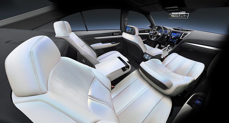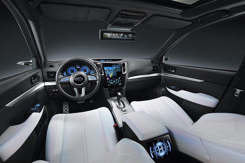 Самое главное изменение в облике Legacy - заметно "раздувшийся" кузов с мощнейшими колесными арками, выразительным передним бампером с большими воздухозаборниками, новыми фарами (напоминающие предыдущую "Импрезу") и вертикальной решеткой радиатора - как на автомобилях Audi. В салоне - множество сенсорных дисплеев, самый большой из которых управляет не только мультимедийным комплексом со встроенной "навигацией", но и климатической установкой, новое рулевое колесо и эффектная приборная панель с голубой подсветкой. Экраны с сенсорным управлением встроены даже в зеркало заднего вида (на него выводится изображение с закрепленной сзади видеокамеры), в подголовники передних сидений, в выступ центрального тоннеля и даже в подлокотник, расположенный между креслами второго ряда сидений.