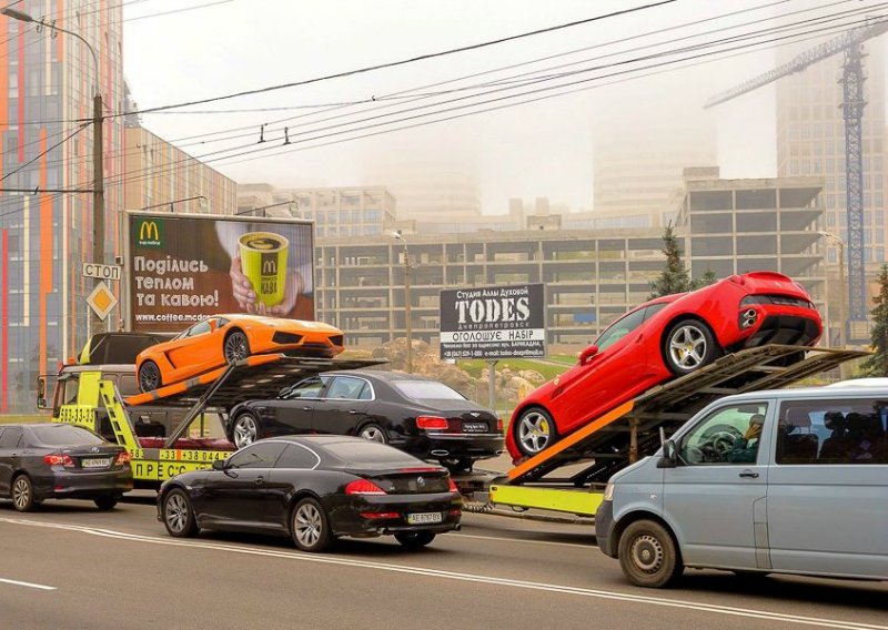 В Днепропетровске сфотографировали автовоз с суперкарами. (Фото)