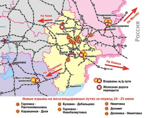 Кстати, по состоянию на 27 июня на Донбассе железную дорогу успели взорвать в 14 местах. При этом, как отмечают эксперты, регион оказывается в кольце.