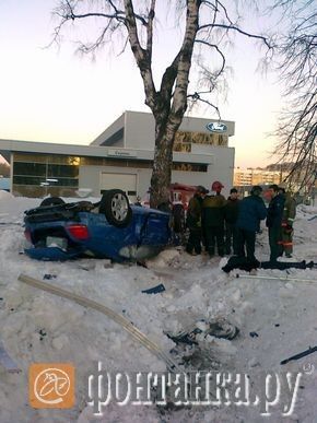 -Bentley занесло, затем тяжелая машина влетела в сугроб, перевернулась на крышу и врезалась в дерево около 44-го дома по Приморскому проспекту, - рассказал источник в правоохранительных органах Петербурга. - От страшного удара женщина-водитель погибла на месте, ее пассажир госпитализирован и находится в крайне тяжелом состоянии.