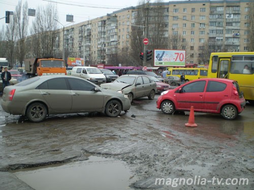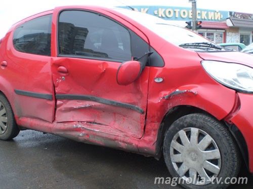 После столкновения Peugeot 107 откинуло и он врезался в Nissan Primera, который остановился на красный сигнал светофора.