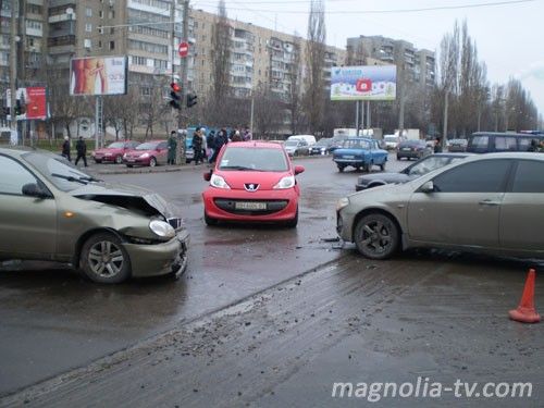 На регулированном перекрестке автомобиль Peugeot 107 столкнулся с Daewoo Lanos, сообщает .