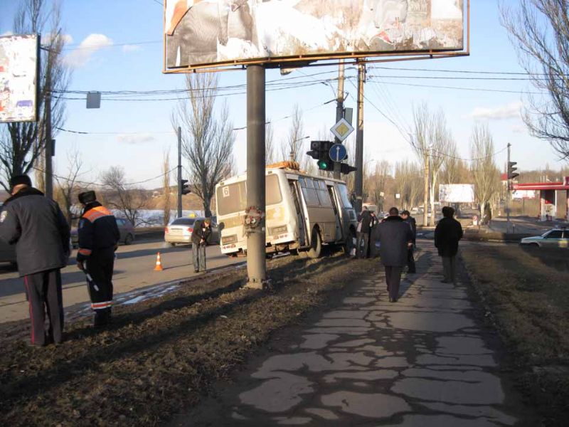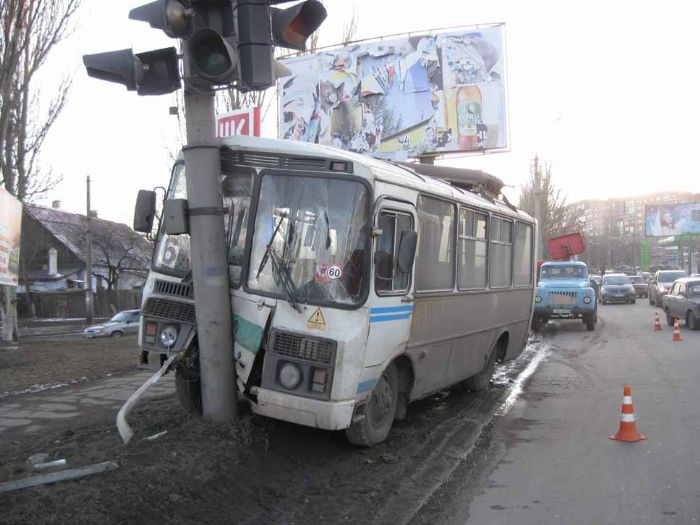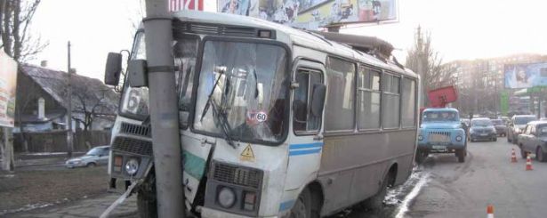 В 15:15 в г. Макеевка Донецкой области водитель автобуса "ПАЗ-32054", двигаясь по ул. Генерала Данилова в направлении микрорайона "Центральный", не выбрал безопасную скорость, не справился с управлением, выехал на правый по ходу движения тротуар, где совершил наезд на электроопору. На момент совершения аварии в салоне автобуса находилось десять пассажиров.
