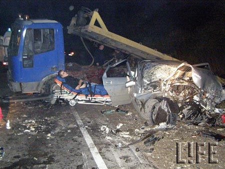 Когда прибывший на место погрузчик Iveco почти поставил машину к себе на площадку, в него на большой скорости врезалась "десятка" со встречной полосы. По словам виновника аварии, водителя "десятки", в темноте он просто не заметил аварийного знака.