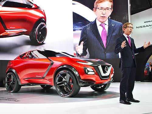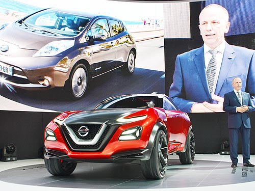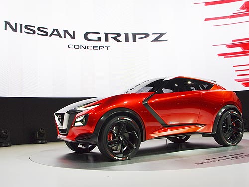Стенд компании Nissan на 66-м автосалоне во Франкфурте традиционно огромный и многоуровневый. Для каждого типа авто - свой уровень. Ведь модельная линейка у Nissan широкая. И, опять-таки традиционно, на стенде Nissan было многолюдно. А когда время стало приближаться к началу презентации концептуального Nissan Gripz, здесь стало и вовсе не протолкнуться. Ведь этот концепт вполне может стать вторым поколением популярного у нас в стране и за рубежом кроссовера В-класса Nissan Juke.
