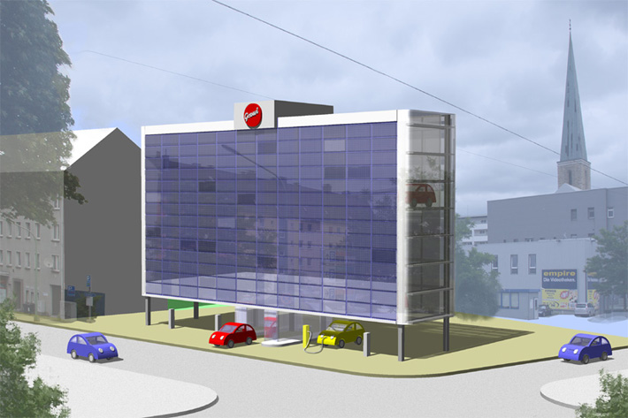 По словам представителя Института Фраунгофера Ральфа Эрдмана, сейчас в Германии подыскивается площадка для строительства пилотного здания в рамках проекта Parkhaus. Здание-прототип предложит около 100 парковочных мест.