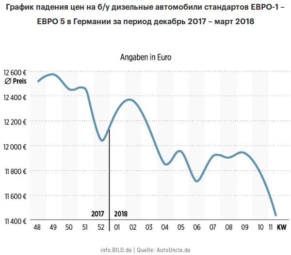 В связи с увеличенным предложением, еще с декабря 2017 дизеля резко обвалились в цене – в среднем на 1759 евро. На некоторые модели автомобилей падение стоимости достигло 3500 евро.