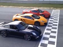 McLaren провел презентацию своего нового суперкара MP4-12C в Португалии и для наглядности превосходства машины над конкурентами устроил увлекательное соревнование по драг-рейсингу, в котором противопоставил новинке Ferrari 458 Italia и Porsche 911 Turbo. Нетрудно догадаться, что лучший результат ускорения по прямой на дистанции 402 метра показал McLaren, но просмотревшие видеоролик отмечают, что соревнование было не совсем честным., сообщает .