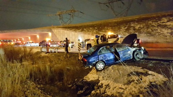 Сообщается, что всего за несколько часов в полицию провинции Онтарио поступили сообщения о более 70 ДТП, в том числе и о переворачивании автомобилей.